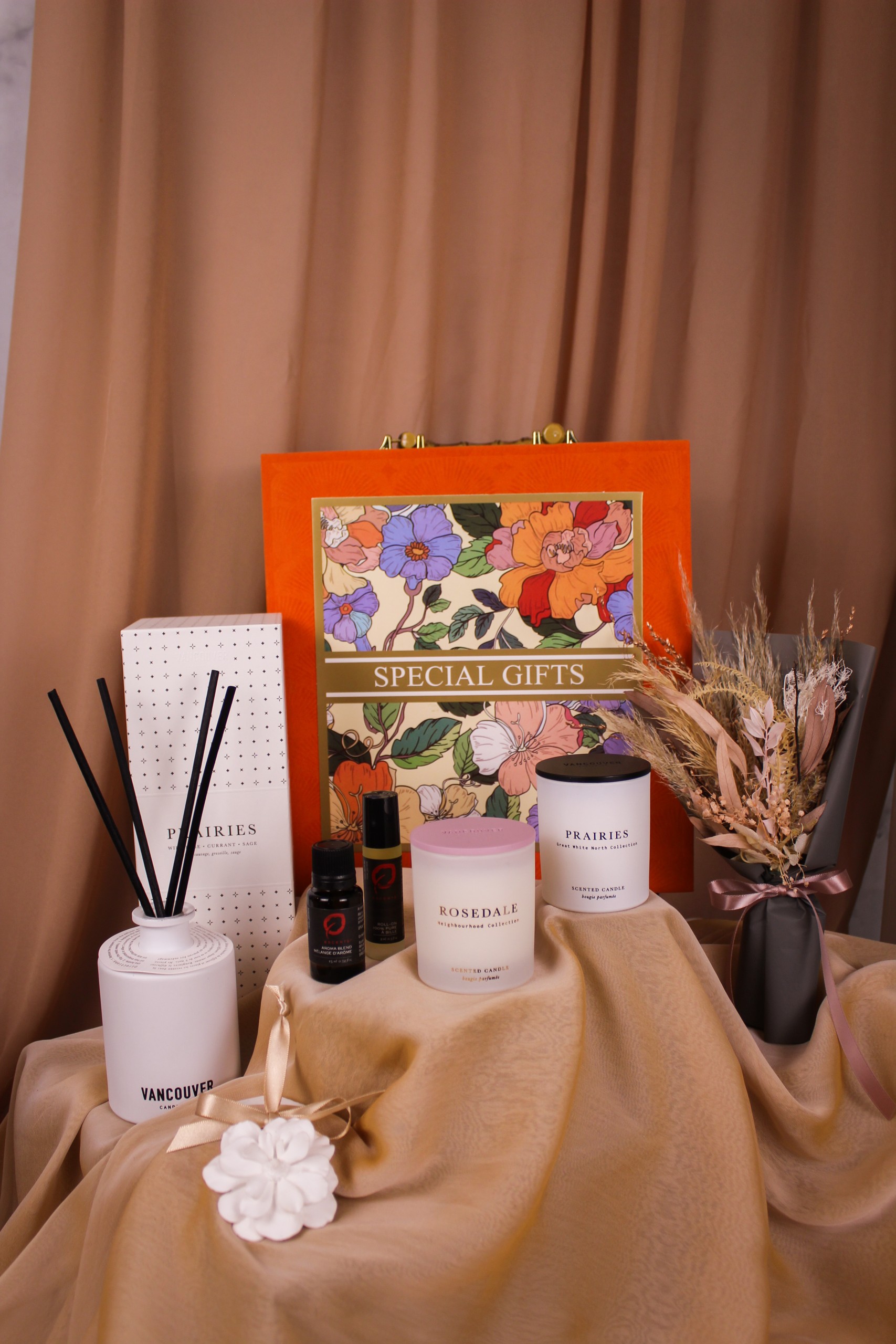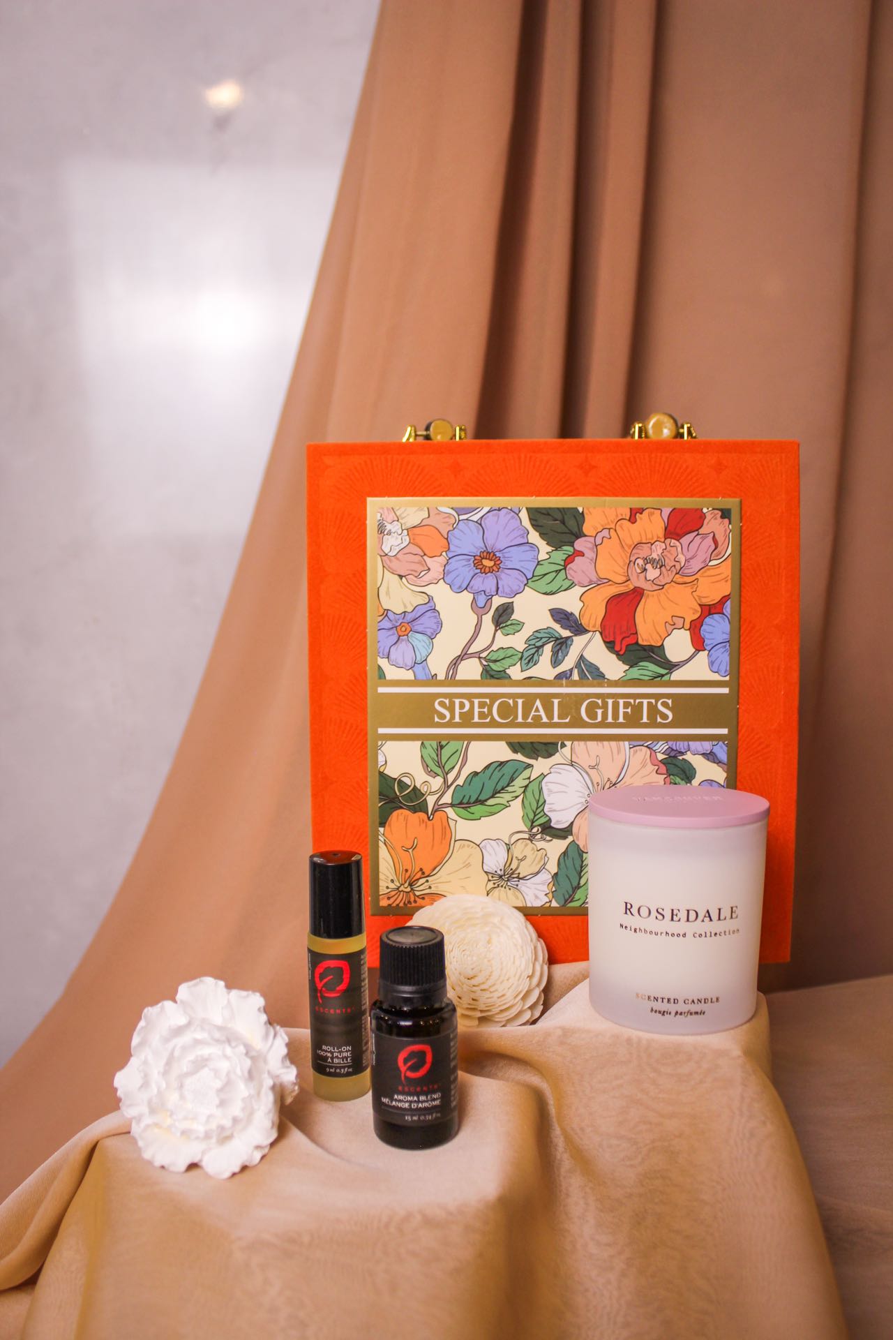 Treat Mom to the ultimate self-care with our Velvet Garden collection. Crafted with care and thoughtfully selected, our gift boxes offer a luxurious escape into tranquility and floral bliss. We curated the Love blend from Escents for a harmonious aroma of love and serenity, complemented by reed diffusers and scented candles featuring Rosedale and Prairies blends from Vancouver Candle Co. All boxes feature a purse-designed velvet box scented with the Love blend essential oil. Available in Serenity Blue, Elegance Beige, Hermes Orange, and Glamour Ruby, it’s a fashionable accessory and keepsake she’ll treasure.
